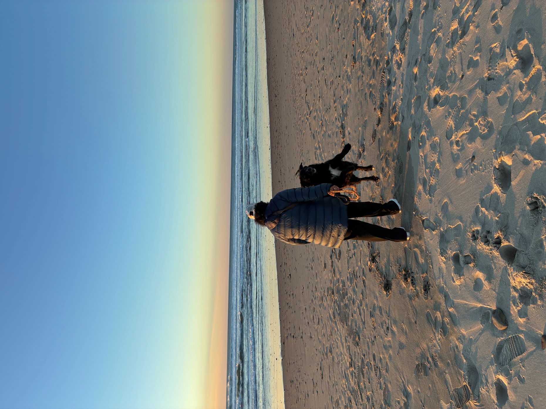 The picture above is Friday night sunset at our closest beach, about two miles from the house. It has been a beautiful run of weeks at the beach. It is clear and cold with an arctic wind blowing. We felt sorry for the dog being cooped up all day and thought this would be a nice ending to a long week. So did a hundred other people that you can’t see behind me.